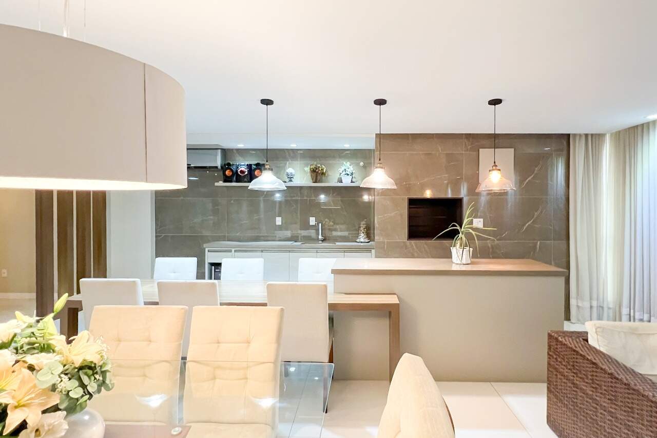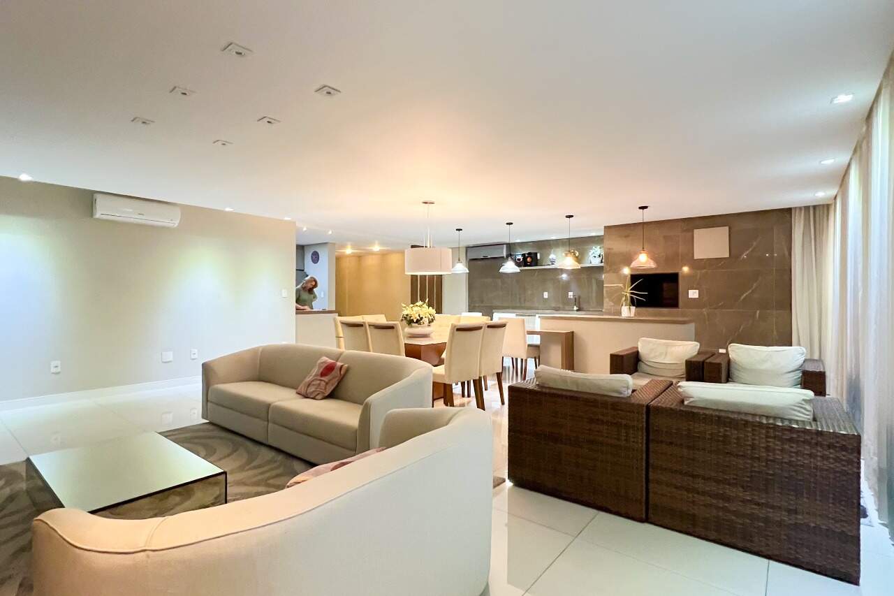 Ampla sala de estar/jantar com churrasqueira